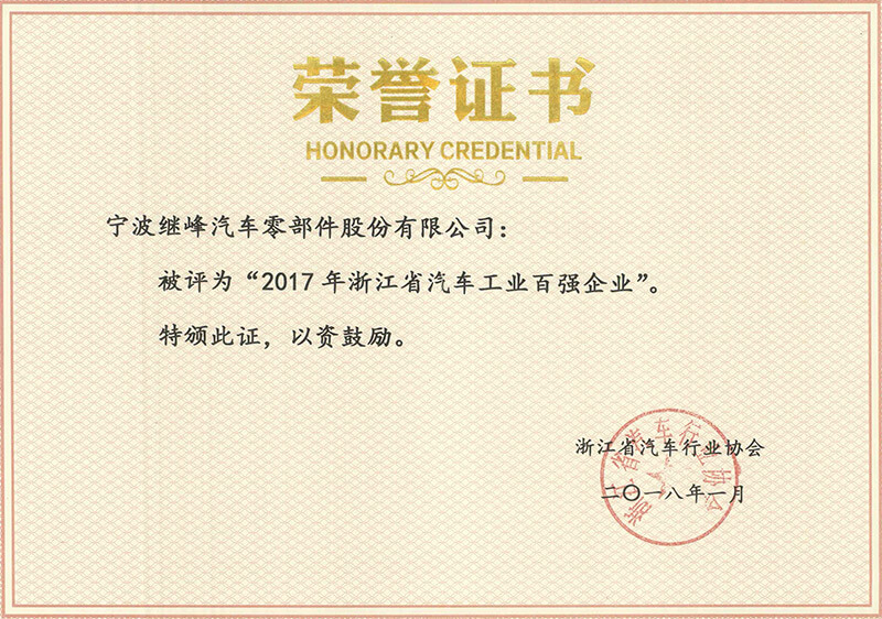 2017年浙江省汽車工業(yè)百強(qiáng)企業(yè)