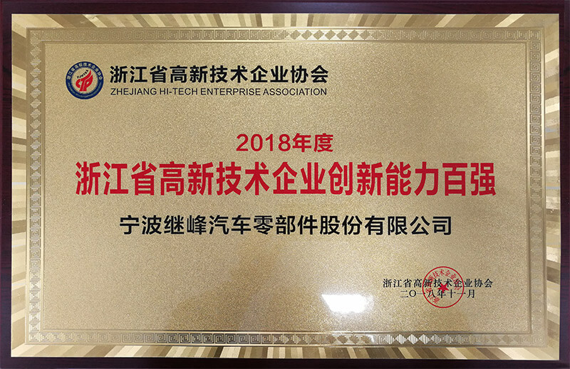 2018年度浙江省高新技術(shù)企業(yè)創(chuàng)新能力百強(qiáng)