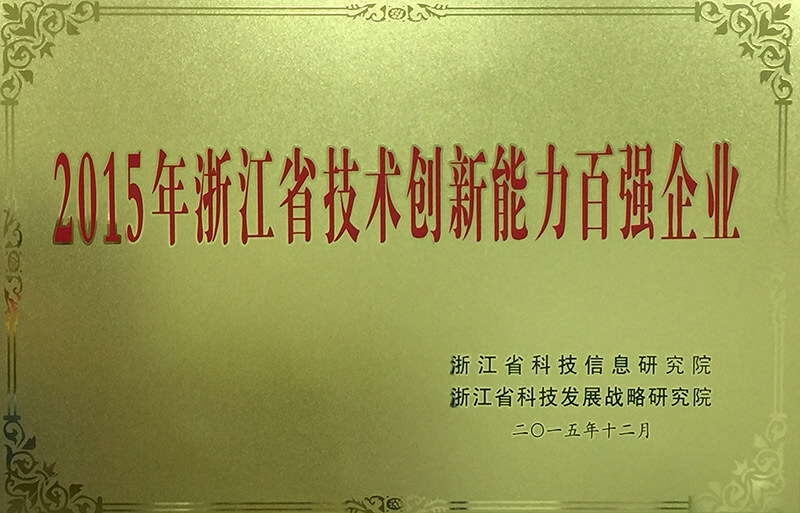 2015年浙江省技術(shù)創(chuàng)新能力百強(qiáng)企業(yè)